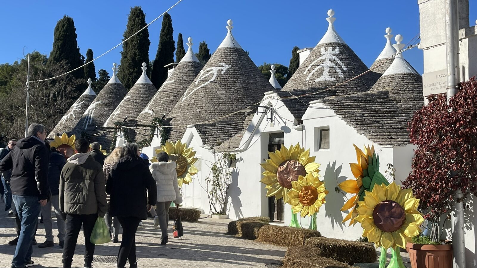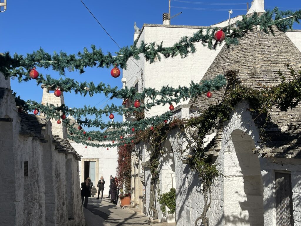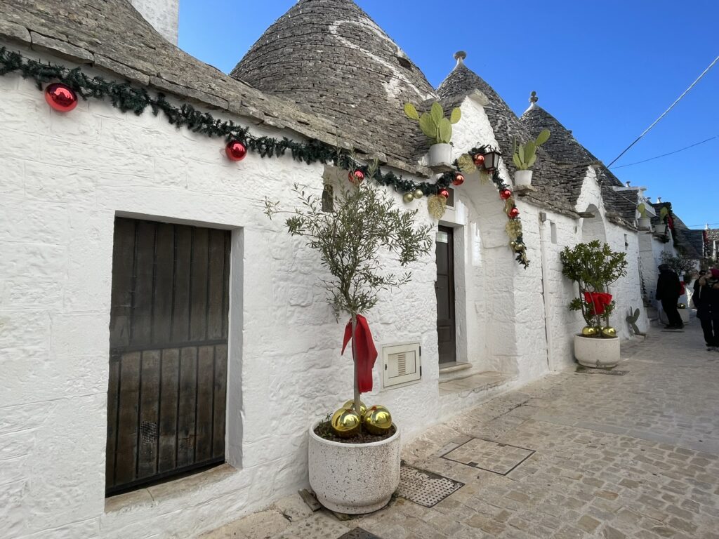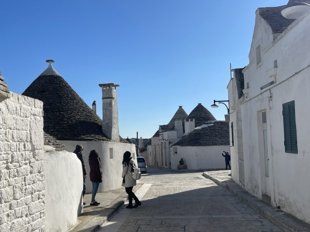 In posizione equidistante tra il mar Ionio e il mar Adriatico, nella Valle d’Itria sorge Alberobello, la cui parte storica, costituita dalle famosissime costruzioni denominate Trulli, è divisa in due Rioni, il rione Monti e l’Aia Piccola. Il nome deriva dall’originaria collocazione di queste abitazioni realizzate a secco con materiali locali, all’interno di un territorio boschivo e spesso conteso proprio perchè territorio di passaggio. Da qui il nome “Alberus-Belli”, il bosco della battaglia. I Trulli, riconosciuti Monumento nazionale, costituiscono un’eccezionale testimonianza storica dell’ingegno e degli usi e costumi di una civiltà rurale povera ma in grado di costruire architetture minimali e al contempo armoniose e ospitali, oltre che un rudimentale e ingegnoso esempio di bioedilizia. La forma circolare, le aperture piccole per garantire una temperatura costante all’interno, la calce sulle murature per garantire un livello, se pur essenziale di salubrità degli ambienti, la falsa cupola interna per ridurre le dispersioni termiche e la pendenza della copertura esterna per convogliare e raccogliere poi l’acqua piovana, sono un’esempio di ingegno ragguardevole.
