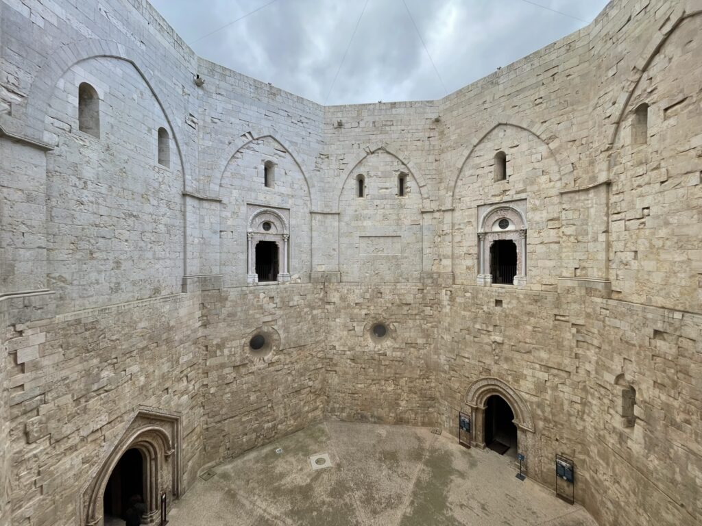 Il Castello, universalmente noto per la sua forma ottagonale riconoscibilissima, svetta su un banco roccioso. Posto nelle Murgie occidentali, ed eretto a partire dal 1240, Castel Del Monte si colloca su di un altura da cui si scorgono il litorale marino e, sul lato opposto, la città di Andria, definita la Fidelis per la devozione al signore del Castello Federico II di Svevia. Su ognuno degli otto spigoli si innestano otto torri delle stessa forma e realizzate nello stesso materiale della restante struttura portante del castello, ovvero pietra calcarea. Ogni torre è caratterizzata da 8 monofore etc.La forma ottogonale è presente in tutti gli ambienti del castello e si collega ad una ricchissima simbologia numerologica ed esoterica. Il fascino, il mistero e l’aura di ribellione progressista che accompagna la figura di Federico II e della sua casata lo rendono un luogo magico e magnetico, di un fascino sopraffino.